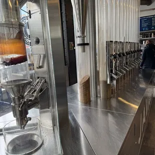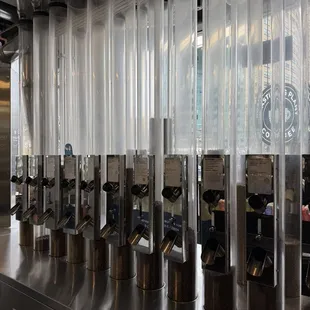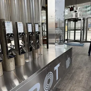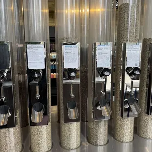 Beans are piped in from the pictured hoppers for each cup/order.