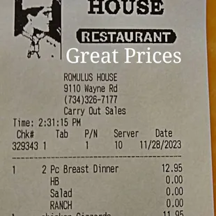 Always enjoy the food and friendly down home service. In the neighborhood!! Even with construction all over my small city it is still surviving and going well. Thanks Romulus House!!