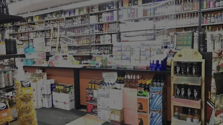 the front of a liquor store at night