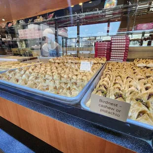 They do have the best Baklava in town for sure. But they do also have the best KANAFE also. They have different kinds of deserts to try and it was delicious to try them out. I waited a long time to try this place and was happy. They opened this second store and is not rush as the main one. This place is hard to find a little but you can find it. Service is good and the place is maintained well. They have pre packed boxes or you can make your own boxes close to same price. And the prices are very reasonable.
