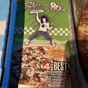 I'd like that location is convenient if you live in Waterford. This is really easy to get to. It's a carryout spot so there's nowhere to eat inside there. I like the theme of the restaurant. It's very 80s when you walk in. From the posters on the wall to the t-shirts on the back wall. It's fun. The pizza box design is also pretty fun. When I walked in I was immediately greeted so the service was good. The pizza is good. It's not the best pizza I've ever had but I wouldn't mind adding it to my rotation every couple of months. We ordered the trilogy which has three kinds of pepperoni on it and we liked it. I ordered ours well done because there was a lot of meat on there. I probably wouldn't do that again because it was almost a little too done for my preference but it was still good. I think it was a good value as it was $19.99 for a large before tax. I do want to try the pickle pizza eventually. Next time I'll also try something on the crust because it was a little dry. The pizza was good enough that I'll be going back to try other things.