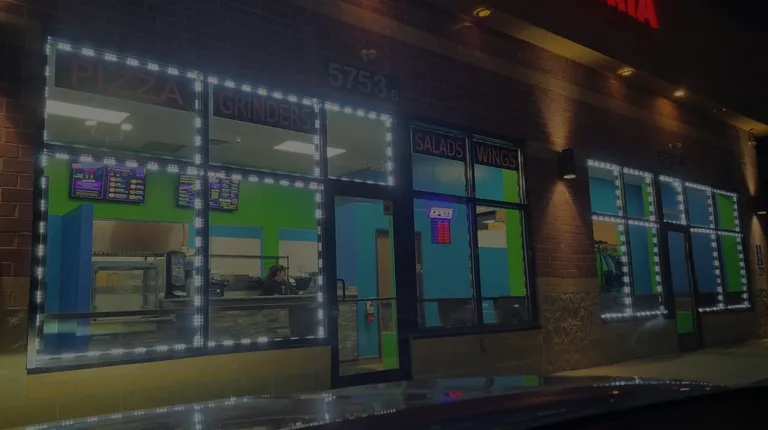 a car parked in front of a pizzaria