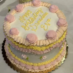 Beautifully executed birthday cake.