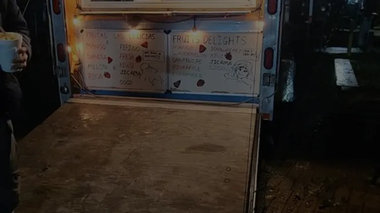 a taco truck in the background
