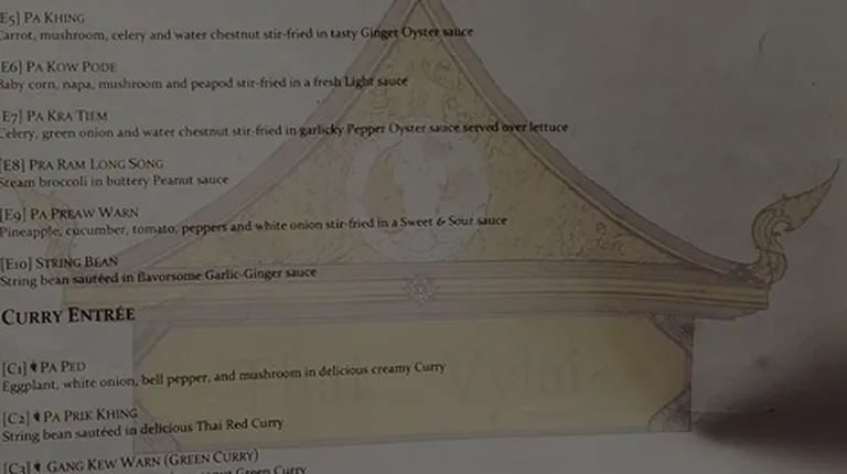 I had a taste for curry catfish and my "Go-To" Thai restaurant is closed for the Holidays, so I visited Thai Vylai. It has been awhile since I visited. I ordered Pla Duk Pad Ped (crispy catfish stir-fried in a red curry with bamboo shoots, bell pepper, eggplant, and mushrooms). Although there was a very good fry on the catfish, the curry would have benefited from more fish sauce. I also thought the portion size could have been larger. I also gave four stars because the interior could use a facelift. It is dark and detracts from the dining experience. The food took a long time getting out of the kitchen, and the servers could be educated a little better. For example, I received a napkin and was handed a fork. I am not sure why since it is proper Thai etiquette to eat with a fork and spoon; eat with the fork in the left hand and the spoon in the right hand. I had to ask for a spoon. Overall, the food was decent, but ambience and service detracted from the dining experience.