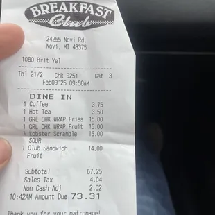 (Total amount + sales tax) x 20% = automatic service charge regardless of the service quality!!3% card transaction Fee !!Modifying your omelet can be super expensive as small changes would add up $$.Why would a customer pay 20% service charge on sales tax ??We are regular customer of their competitor around this area, today we wanted to try NOVI breakfast club brunch a family of five adults and two kids had breakfast today. The food was OK. Service was decent.However, the most disappointing matter is the restaurant try to rip off the customer. They charge me 22% service charge automatically which was included the sales tax and in addition 3% card transaction fee as well.Upon discussing with the owner this matter, she mentioned her girls survive on the Tips so I was wondering if we have to pay the service charge that the service has to be the top notch level Generally, the restaurants do charge a service they are high-end restaurants not a breakfast place like breakfast club of Novi. If the owner expect customers to pay their server wages and card transaction then I'm grateful they didn't charge me for gas and electricity bill .I understand tips is super important, we American customers generally pay 15 to 18% service charge and if the service is really good, then I try to put 20 even 22%.It was quite disappointing that almost a big chunk of money they tried to charge the customer on top of the big bill, so my bill was over $200 for 5 adults and two toddlers.Moreover, I don't mind paying lot for good Cappuccino but then it to be served properly. So my three order of cappuccino to go was served in a big form cup with straws in it, which was horrible because the coffee got cold super quick.Positive finding:Food well prepared and presented nicelyBusy place, menu looks good.For big table they do take reservations which is nice.Freshly squeezed orange juice.