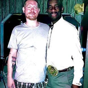 Candid photo of Father & Son rising by, while waving, during the 100th year anniversary!