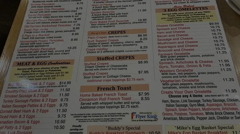 The food was really good. The strawberry crepes were delicious! Excellent service. Connie was a great server! Warm cozy diner! Definitely will return to try their other amazing selections!