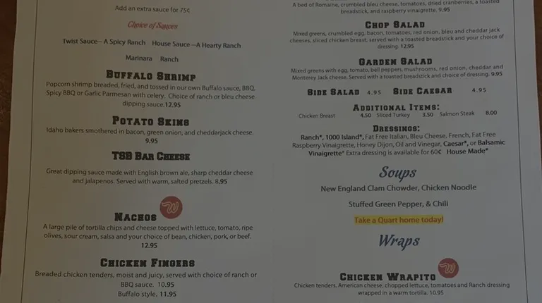 I was craving something a little bit different for lunchtime recently, and after a quick Yelp search, I came up with the Sports Bar Westside. With an easy to access location at Zeeb and Jackson, and a menu that looked to contain some healthier(ish) options, I was eager to try the place out. My partner in crime and I arrived just after 12 for a quick weekday bite. The restaurant was busy, but not too crowded, and we were able to grab a booth in the front. It wasn't long before a server came by our table, and we inquired about a few of the different wrap options. Neither of us could decide between 2 of the same wraps, so we did what we love to do when that happens: order one for me (Monterey) and one for him (Wrapito) and share. A bit later our wraps arrived, and we swapped out half of each to each other. Our server had said that the Monterey was the most popular, so I was eager to see if our tastes matched up to that. We both started with the Wrapito, and I loved the crunch of the chicken tenders and the hint of spice that this one offered. In comparison, surprisingly, the Monterey was a little bland. After we had both finished, I asked him which he liked best. "Actually, the Wrapito," he shrugged, and I agreed. When she brought our check, the server asked us the verdict, which we delivered with a shrug and a smile. The next time I'm on the west side at lunchtime, I'll plan to stop on in again to try something new at the Sports Bar Westside!