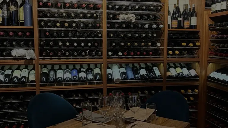 a wine rack full of wine bottles
