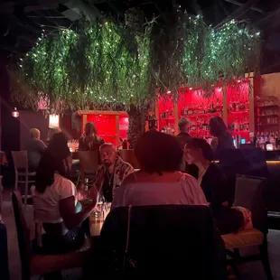 people sitting at a bar in a dimly lit room