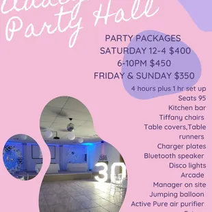 This past weekend I went to my cousin's quinceañera at Adalyn's Party Hall, and I was really impressed. The decorations were beautiful, and the place was super clean and well taken care of. It had such a warm and inviting vibe, which made it perfect for the celebration. The owner and staff were amazing they were always around to help with anything we needed. Overall, everything went smoothly, and I'd totally recommend Adalyn's Party Hall for any event!