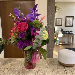 The design of the birthday arrangement was nice. However, the staff agreed to include 4 red roses with the white lillies and 4 small loop bows, per my request. Instead, they sent 3 stalks of lillies and eucalyptus. It was pretty, but not what we agreed upon for the price, for my friends birthday. To have a business do what they want and poo-poo the customer's agreed upon order and payment for that order is wrong. I did place a call into them after receiving a picture of the arrangement and they did not respond. I will be finding another florist in EP.