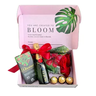 The Bloomful Bloom Box is here! Our NEW Bloom Box comes with a flower wrap + champagne + chocolates.
