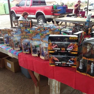 They have typical flea market stuff...knock off designer items, bootlegs, etc. They also have an indoor portion with new items..in the box...a lot of no name brands for house cleaning supplies and toiletries as well as toys and other stuff...If you go, hit up the lady with the freshly made churros for a buck...they're so good.