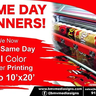 They do not get your signs or banners out on time but do have a TON of excuses usually blaming the customer or someone else. They're really good at hounding for payment but do not deliver on time. Also, they're extremely hard to get a hold of since they're always out of town. So expect your product a month late or to be ripped off. I'm surprised the owner has not being sued for ripping off clients and potential business associates. Most of the things they boast they do they outsource and charge customers more! Do your research and call other companies for better & honest quotes.