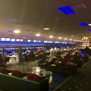 So, it's $30 per hour per lane, no matter how many people are playing. That's pricey for a dumpy bowling alley, but fine. They also don't want to give you shoes if you already came in sneakers. Weird, but rental shoes are gross anyway, so fine. We played a game and a half in the hour before time ran out and wanted to add an hour, but were told there was a one hour wait if we wanted to "make a reservation". So, that's obnoxious on its own, but there were 18 lanes OPEN out of 40. We counted. We were told some were resetting (I imagine that's code for "broken") and also that they keep lanes open in case one breaks down. That means they intentionally keep almost half their lanes completely unavailable. We even offered to pay for a full hour on one of the backup lanes, and if someone else needed it, we'd leave (so we'd absorb the risk). But, we were told that would be "unfair". My expectations for bowling alleys are incredibly low. I expect stale beer, garbage food, poorly maintained lanes, and (here's the kicker) being able to play when half the lanes are open. Apparently, my bar was set too high.