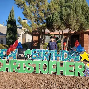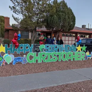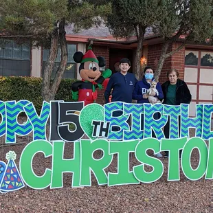 Card My Yard El Paso did an excellent job for me and my son and family! They went above and beyond to make my son's 15th birthday extra special. I really wanted my son to have a memorable birthday. He had one alright...it was perfect even during a pandemic. He is a good student and doesn't cause me to get lots of gray hair. My mom told me about Card My Yard and I immediately reached out to them. They promptly responded to me. I contacted them on social media. They told me I could order the sign I wanted and pay online so I did that. They asked me what colors I would like and even what my son was into. He loves video games. A cake I ordered wasn't included in the sign but no biggie at all. They said items may not be available when they go and set it up. It was $70 plus tax. Yes, a bit pricey but so worth it for mijo! I really wanted to have a big party for his 15th birthday but unfortunately that wasn't an option. Hopefully we can have a big party for his 16th. We celebrated the best way we could this year. I highly recommend Card My Yard. They came and put the sign up a day before my son's birthday. This is a nice way to celebrate holidays or someone special in your life. I'm thinking of doing it for my grandmother's birthday in January. She's in the photo with us here. She'll be celebrating 86 years God willing. :)
