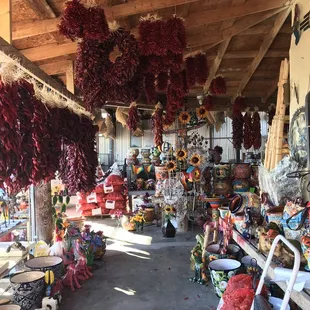 Great gift shop with a lot of interesting items, mostly imported from Mexico. This is also the first place I've seen with the multi colored chile wreaths instead of just the usual red. The best thing about this place is their selection of bulk dried chile powder. They have all different types at really amazing prices. We got chipotle, cumin, jalapeno and a huge bag of mild red chile powder.