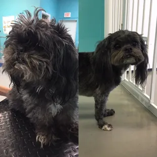 Before-and-after of Annabelle. Her mom requested no schnauzer furnishings because she rolls around in the grass and gets messy :P