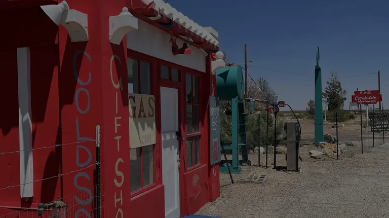 I found this place completely by accident! It's in the middle of nowhere, but it popped up just in time!The food is pretty pricey you'll pay about $7-$9 for a burger. Fries and drinks are extra. The food is pretty good, I always get the Cornudas Burger with green chili. the onion rings are amazing.The atmosphere is a little different. There are tons of old photos everywhere, even under the tablecloths. The place is old, and the people that are always in there are too. The old lady who runs the place is pretty nice. The menus are on paper bags, and the drinks are served in mason jars. If you're not a customer there is a $1 fee for the restroom.There is a gift shop that's so overpriced it's not funny, mainly full of really old stuff. All in all you gotta stop in and try a burger here