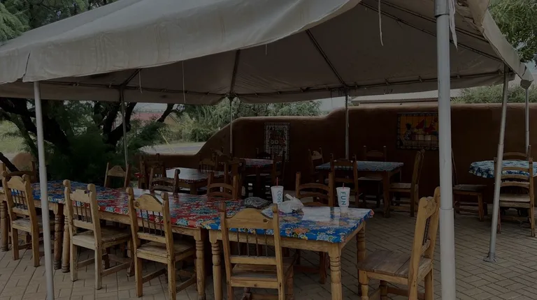 Seating area behind food truck