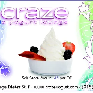 Craze has always been my favorite froyo spot in El Paso. I actually used to come to this location on a weekly basis, but now I find myself at the Westside one more (just closer to where I live). And if you've never had their cucumber lemonade... get it now!I think they have about eight flavors in rotation on any given day. My favorite is the tart (aka "original"), but I also usually get some coconut and chocolate. And yes, you can try the flavors first.What really has me sold about Craze is the topping options... I always go straight for the cookie dough. They have lots of chocolate options like M&M's, chocolate covered pomegranates, Butterfingers, Oreo's, and other things I'm forgetting. Of course they have chocolate and caramel syrup. You have fruit options, cookie options, wafers, and they have boba beads!You pay by the weight so it's really up to you how much it costs. But I know when I go in I've gotten some pretty big cups of froyo and toppings for $6-$7. Not too shabby!Craze has a really cool laid-back modern atmosphere. And I've seen (I have yet to test this out myself) on their Facebook page that they allow pets... and I don't mean they just allow pets on the patio, they allow pets inside.
