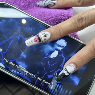 i am SO SOO happy to find this gem! i've been wanting anime nails for the longest time and Ms. Bea came thru and gave me exactly what i wanted!! Jiujitsu Kaisen! I can't wait to see what I am going to do next with her!
