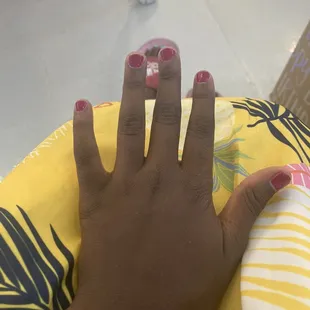 The place and vibe is great. I like my nails, but they are a bit sloppy. There's a lot of the gel in my nail bed and polish on my skin. They are good enough but likely will find a different salon.