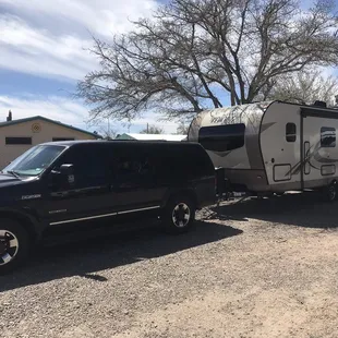 So we were on our way home back to Austin, TX after a 9 day Spring Break road trip through New Mexico, Arizona, and Utah. We pulled into Deming, NM and noticed our diesel Excursion was running a bit hotter than normal. Since we were towing a travel trailer and still had 10 hours to go, we decided to find a mechanic that could look at our truck. Unfortunately it was Saturday afternoon and every shop we called was closed or couldn't help us because it was a diesel. We found a shop Mitchels that could fit us in first thing Monday morning. So now we had to find an RV park to stay at. Roadrunner pretty full but they squeezed us in, and due to our circumstances they made room for us through Monday and offered us a killer rate. Jim at the front desk was very nice and Lee a resident at the park and retired mechanic offered to help figure out what was wrong with our truck. One evening my 7 year old son and I wandered into the clubhouse and began playing pool and shortly there after the soon to be new owner walked in and introduced himself and his wife. Very kind people, his wife played a round of pool with my son. The site was level and had full hook ups, the location was within walking distance of a movie/bowling alley complex and a Walmart. The bathrooms were ok, not the greatest but they were fine. I'd recommend this park to anyone.