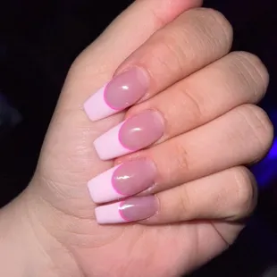 Went in to get French Gel Manicure. They don't ask you to wash or sanitize your hands before starting service. They do offer to dip your nails which is used between clients. That would be a NO. Three days after nail gel visit, the nail polish was chipping. I returned and salon owner wanted to blame me for chipping polish. I don't wash dishes, cook or do manual labor. It definitely wasn't anything I did to cause chipping polish. Even after getting 2nd service, the polish again chipped. My conclusion: cheap nail products. Won't go back here.