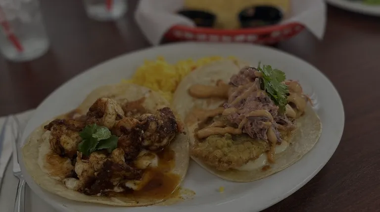 Fish and shrimp tacos. Just a little spicy. Delicious.
