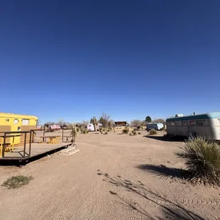 Winter stay in one of the trailers. Kinda worried reading other reviews but this place was outstanding for the Southwest Slow vibe I was going for. Having done other camping experiences in the Southwest, I was definitely prepared for a lot of DIY (food, heat, toilet stuff). This place had enough of the essentials (heat, coffee, toilets) that it felt like a fancy camp without losing the "roughing it" vibe that's integral to SW "outdoors" experiences. The main building has a boutique shop, comfy couches, and good heat (again, winter stay) as well as a nice cup of coffee in the morning. Large trailer fit two adults and a kid; could have brought the dog and fit nicely. Two burner stove, very small fridge, and a big hot water tank made doing my own food easy without taking up all the inside space. Beds were comfy, warm, and clean. Heat worked well. Old trailer so the window and door seals were meh but the heater and warm blankets made up for it. If you go in winter bring some slippers or slides - the floor gets cold! Bring your own entertainment. This area is not a scene - classic camping in that you need to make your own fun. Books, puzzles, etc. Trailer had lots of outlets and a great Bluetooth radio speaker so music can play all day and night if that's your thing. I'm not sure I'd come out here in the middle of the summer because being in a trailer all day when it's 100+ isn't great. But this place would be a lot of fun to try in spring or autumn as well. Definitely an Experience and one that's worth a stop if you're in the region.