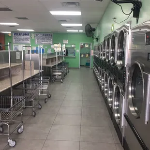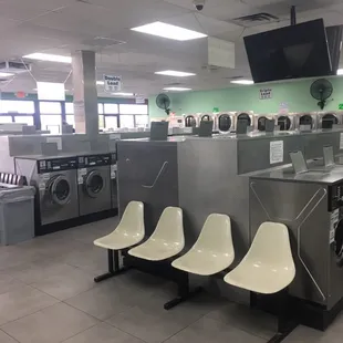 I will only do my laundry here from now on. I've gone to most of the laundromats around town and I randomly was driving by and saw the sign saying $1.00 wash for a double load and free drying!!! I decided to try it on a Sunday and was expecting it to be packed at 3pm but to my surprise it wasn't. 4 out of the 6 double load washers were open! Only took 23 minutes so compared to the 27 minutes and $1.75 I usually pay at other places it was great. It was very clean, air conditioned, and very new machines! I'm assuming it was the owner who was very friendly. He greeted me and when I said it was my first time he took the time to tell me about all their services and the only down side to it was when I asked about the free drying he told me that's only on Tuesday Wednesday and Thursdays and only if you pay for washing. Also with the dryers you have to put in $1.50 to start the dryer on the other days and if your clothes are still damp but don't put in your 25 cents before the time is up you will have to put in another $1.50 but besides that i loved it! I decided I'm going to change my laundry day from Sunday to Tuesday Wednesday or Thursday from now on!