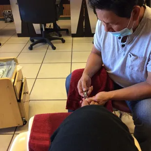 I'm from another state, visiting my Mother. Made an appointment for powder nails - showed the man my nails while describing what service I wanted. Come for my appointment and he acts surprised that I have powder and tells me I have to "take it off" (the old nail powder), and I tell him yes, I know.. my nail tech takes it off. After a bit more conversation I realize he just doesn't want to do powder. Complete Waste of my time. I would not recommend.