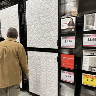 The store has an abundant amount of flooring available to choose from. When I walked into the store, I noticed a store associate moving boxes of tile while on his knees. I mentioned he should have on knee pads, he said "yeah". His name is Richard and when I found the tile I wanted he was a big help explaining the tile I chose. He also put my chosen tile on hold for 24 hours while I spoke to my contractor. Great customer service.The only "con" I have is store does not offer a military discount which helps with many of my purchases. Corporate please consider this discount and not just on special holidays. Be like LOWE'S (that's why I shop there).