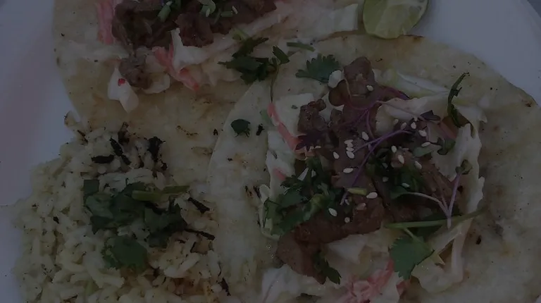 a steak taco on a white plate
