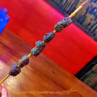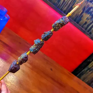 We split the toothpick lamb plate and a Godzilla roll. It was honestly the best food I've had in a long time The lamb was well seasoned, crispy on the outside and tender. The Godzilla roll is delicious, with the perfect amount of spice to balance the flavors I'm definitely going back