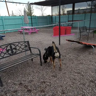 LOVE THIS PLACE!!! I have 3 little fur balls and some of the dog parks in El Paso suck because of all the thorns that get stuck in their paws. But this place is AWESOME!! My fur babies love it here because they can run and play in the little dog park while I chill and have a drink and some tacos. Also, the server girls are so friendly they love all dogs who come visit. The food is super delicious also.. I recommend the shrimp tacos because they super flavorful. They also have adult outdoor games inside and outside if you choose to chill with some friends and have drinks. This place gets pretty busy on Saturday's but if you come during the week it shouldn't be too bad. They also have karaoke inside the bar in case anyone is a good singer. The only bad part is that they only have one dog park area for big and small dogs so your BIG dog has to be nice to the little guys that want to play also... but besides that ....I will most definitely be returning again with my lil fur balls in the future. Enjoy my pics:)