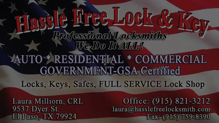 I have been using Hassle Free for 35yrs they are always professional and work quickly to help their customers. Laura had my truck open in 3.5 seconds. I'm sharing a quick video of her coming to save the day in less then 45min. Thank you so much. TRUST THERE IS NO HASSLE WHEN WE USE HASSLE FREE. Great service always