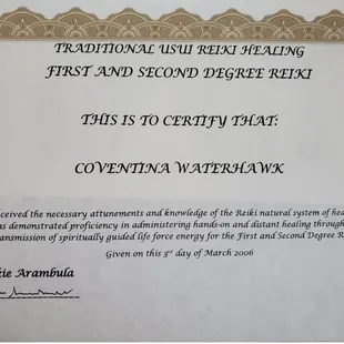 I had a reiki healing on Tuesday. I have had a cough that had persisted over a month. This was my first visit and I am amazed. Here it is 3 days later and my cough is completely gone. l will see her again in the future. I also had a reading and will take the suggestions she made to help me in the future. I highly recommend Coventina.