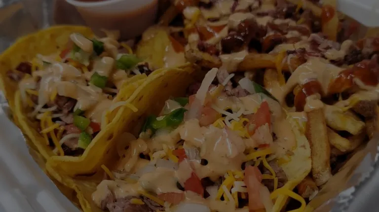 a tray of loaded fries