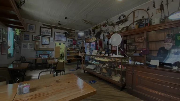 Modest little general store and cafe has about four parking spaces and a half-dozen tables (but also counter service)