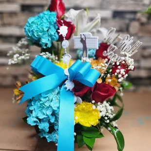 basket floral arrangements start at 50.99 plus tax, colors available upon depand