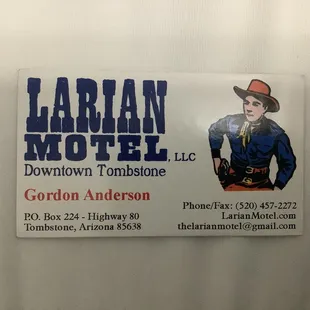 You're looking for a place to stay in Tombstone and a street vendor recommends the Larian Motel. She tells you it the best, cleanest, and friendliest place in town or for that matter the surrounding area. She was on point with her advice. This establishment hits it on all cylinders and it is a premier location to enjoy Tombstone within walking distance. It is relatively inexpensive for all that you can enjoy and rest comfortably in the heart of Tombstone. 5 stars from us.