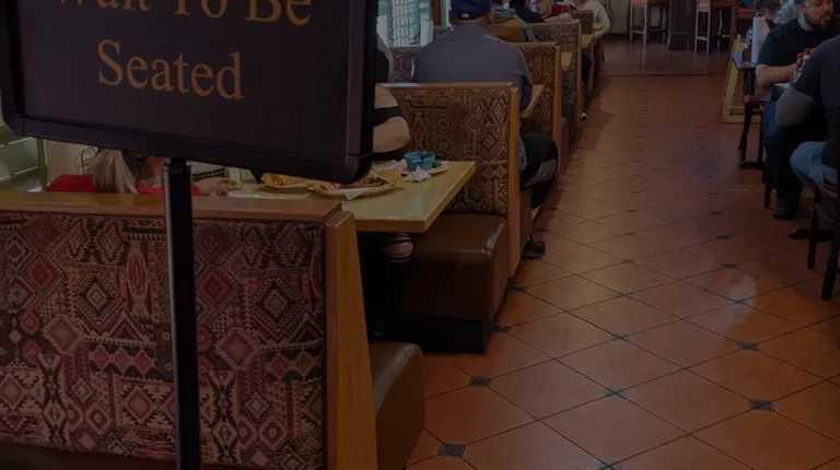 a restaurant with a sign that says please wait to be seated