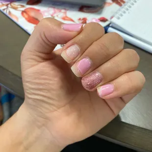 Rebase with pink gel polish