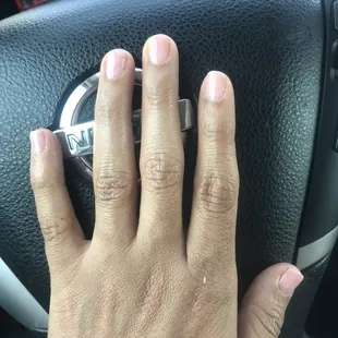 I tried this salon because I'm new to the area and was in great need of a manicure since my last dip nails damaged my own. I asked for a natural look because I work in healthcare and need a clean, short manicure. I appreciated that I did not have to wait despite being a walk in. However, I wish they were wearing masks especially with the science behind the effectiveness of wearing masks. They have a sign asking customers to do it but they don't. There was one layer of color and I would have appreciated more, usually there are multiple layers of color and gel but she did a base, the color, and a gel coat and that is it. The OPI UV machine was not working well and it burned the tips of my fingers more than I've ever experienced before. I will not return mostly because of the lack of health risk mitigation but also because the quality of the manicure was lacking.