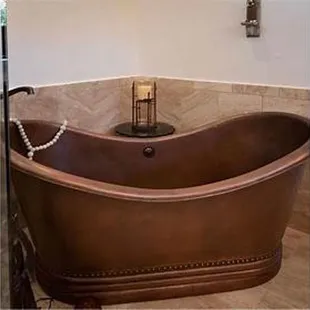 a bathroom with a tub and a sink