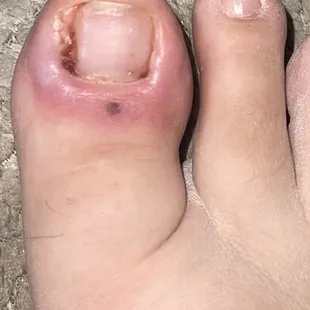 I will never into the salon again, here are photos of what my pedicure looked like seven days later. I now have to undergo surgery on both toes!